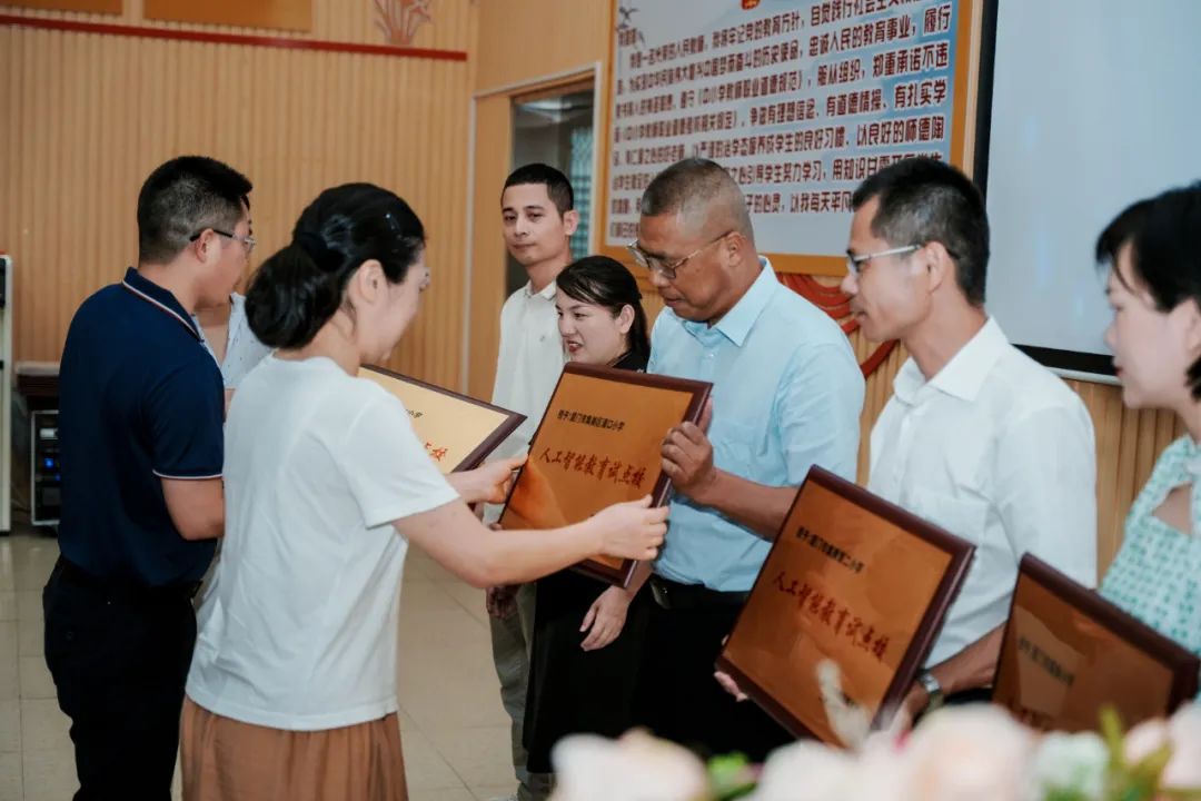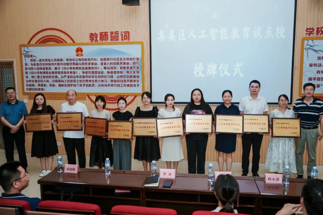 现场为集美小学、集美二小、西亭学校等集美区三批次共22所集美区人工智能试点校进行授牌,希望试点学校在人工智能教育领域融合科学大力开展教学实践,在科学教育创新方面取得实践成果。