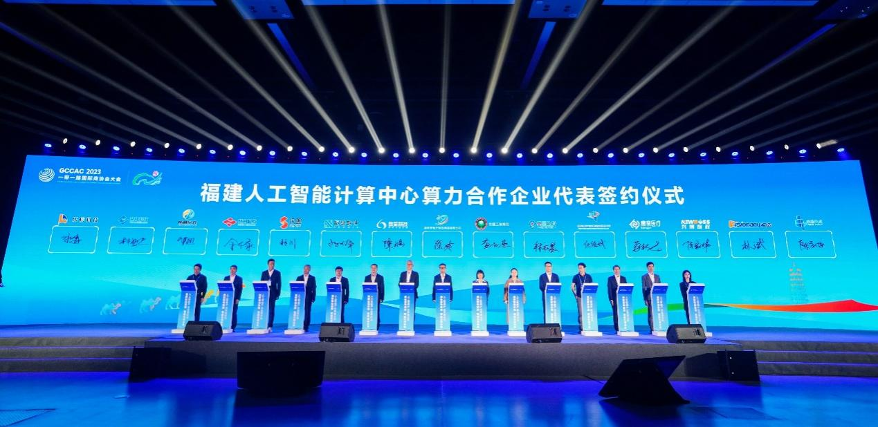 现场还举行了福州市电子信息集团有限公司与北京理工大学东南信息研究院、博思数采、美亚柏科等14家高校及企业的算力服务签约仪式。