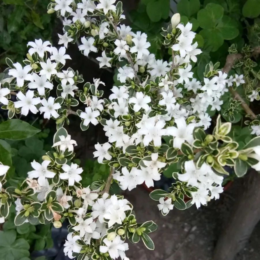 附注:六月雪树的树形纤巧,枝叶秀密,暑热六月(农历)时节白花盛开,远眺好似满树雪花,所以叫做“六月雪花”;近看犹如满天星斗,故又名“满天星花”。